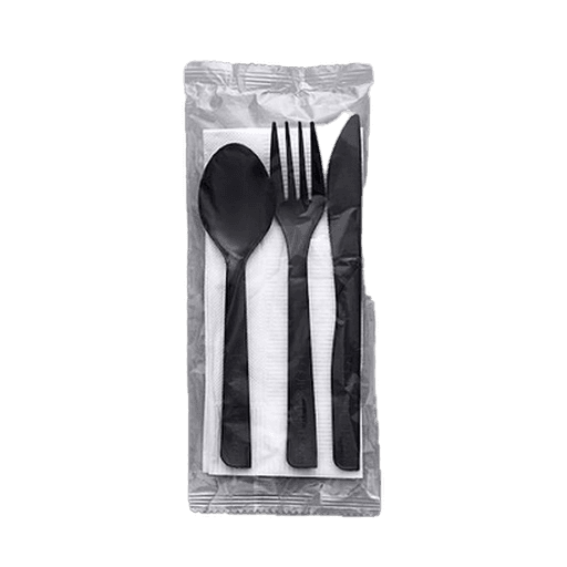6 INCH FORK, SPOON & KNIFE W/NAPKIN SET WRAPPED IN PE BAG (WHITE)