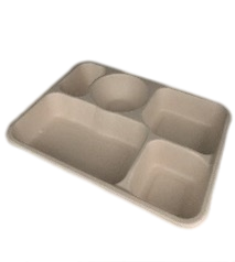 26 X 21 X 2.5 CM SUGARCANE BAGASSE 5-COMPARTMENTS TRAY